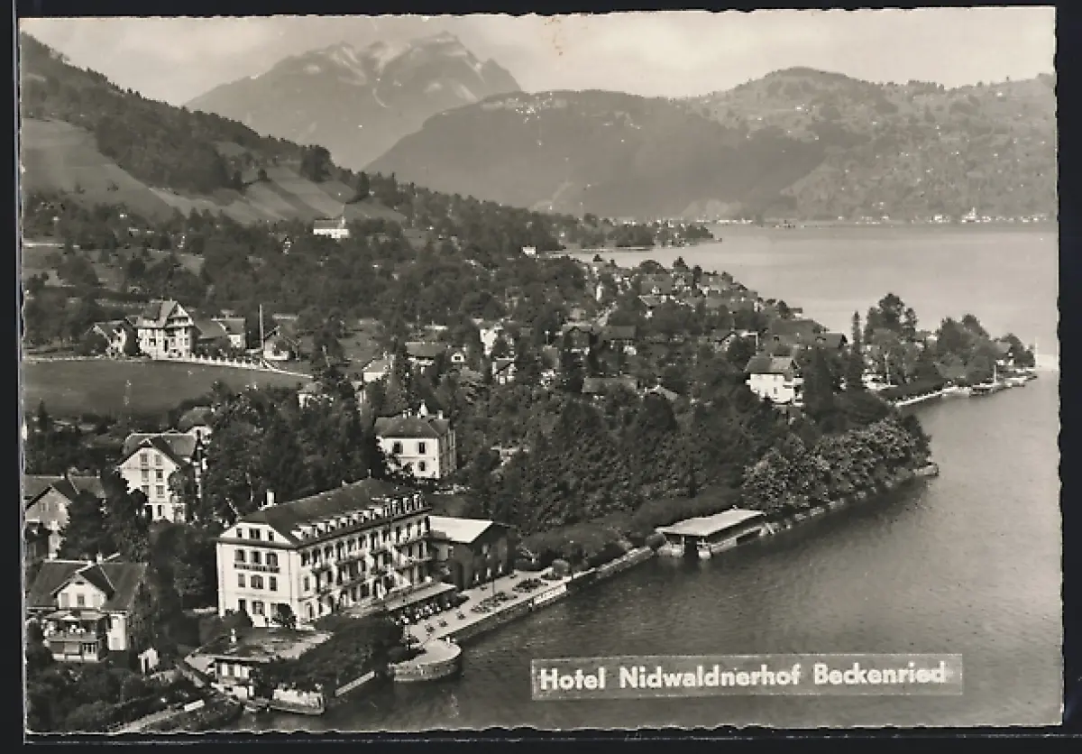 AK Beckenried, Blick über den Ort mit Hotel Nidwaldnerhof