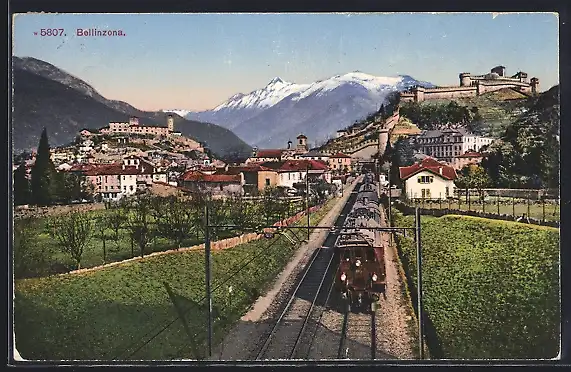 AK Bellinzona, Teilansicht mit Eisenbahn