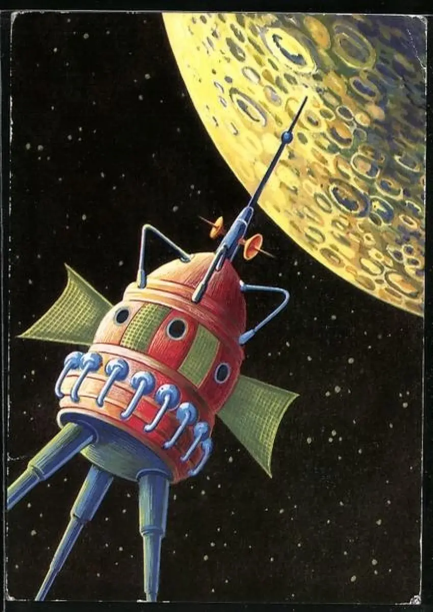 AK Bemannte Mondfähre im Anflug auf den Erdtrabanten, Raumfahrt