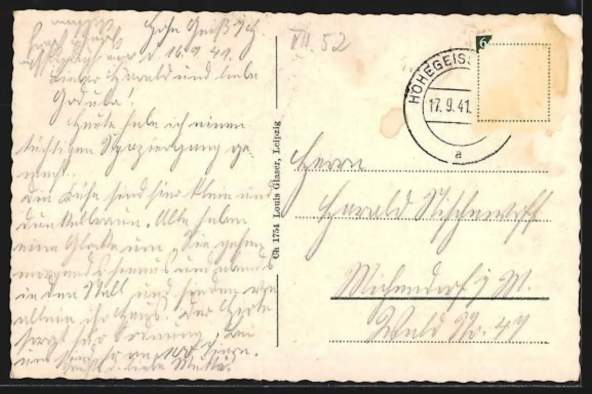 alte Ansichtskarte, gelaufen 1941, Briefmarke entfernt, guter Zustand