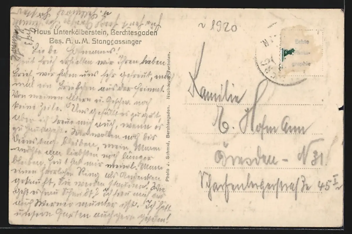 AK Berchtesgaden, Hotel-Pension Haus Unterkälberstein, Bes. A. u. M. Stanggassinger, Alpenpanorama