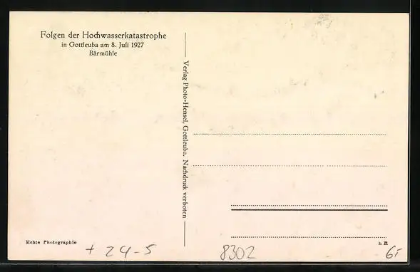 AK Berggiesshübel, Folgen der Hochwasserkatastrophe 1927, Zerstörte Bärmühle