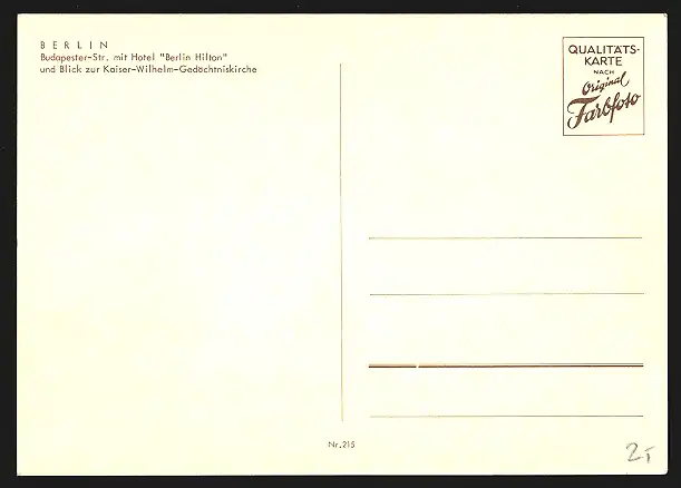 AK Berlin, Budapester-Str. mit Hotel Berlin Hilton und Blick zur Kaiser-Wilhelm-Gedächtniskirche