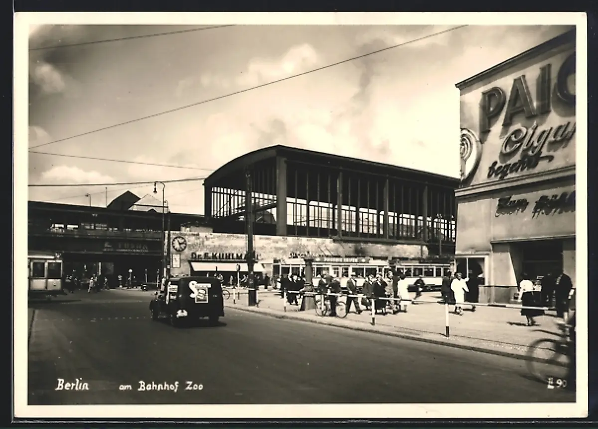 AK Berlin-Charlottenburg, Am Bahnhof Zoo mit Geschäften und Strassenbahn