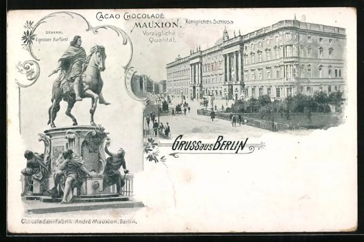 AK Berlin, Chocoladenfabrik Mauxion, Königliches Schloss, Denkmal des grossen Kurfürsten, Kakao