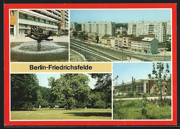 AK Berlin-Friedrichsfelde, Kreuzung der Strasse der Befreiung u. Rhinstrasse, Schwimmhalle am Tierpark, Freigehege