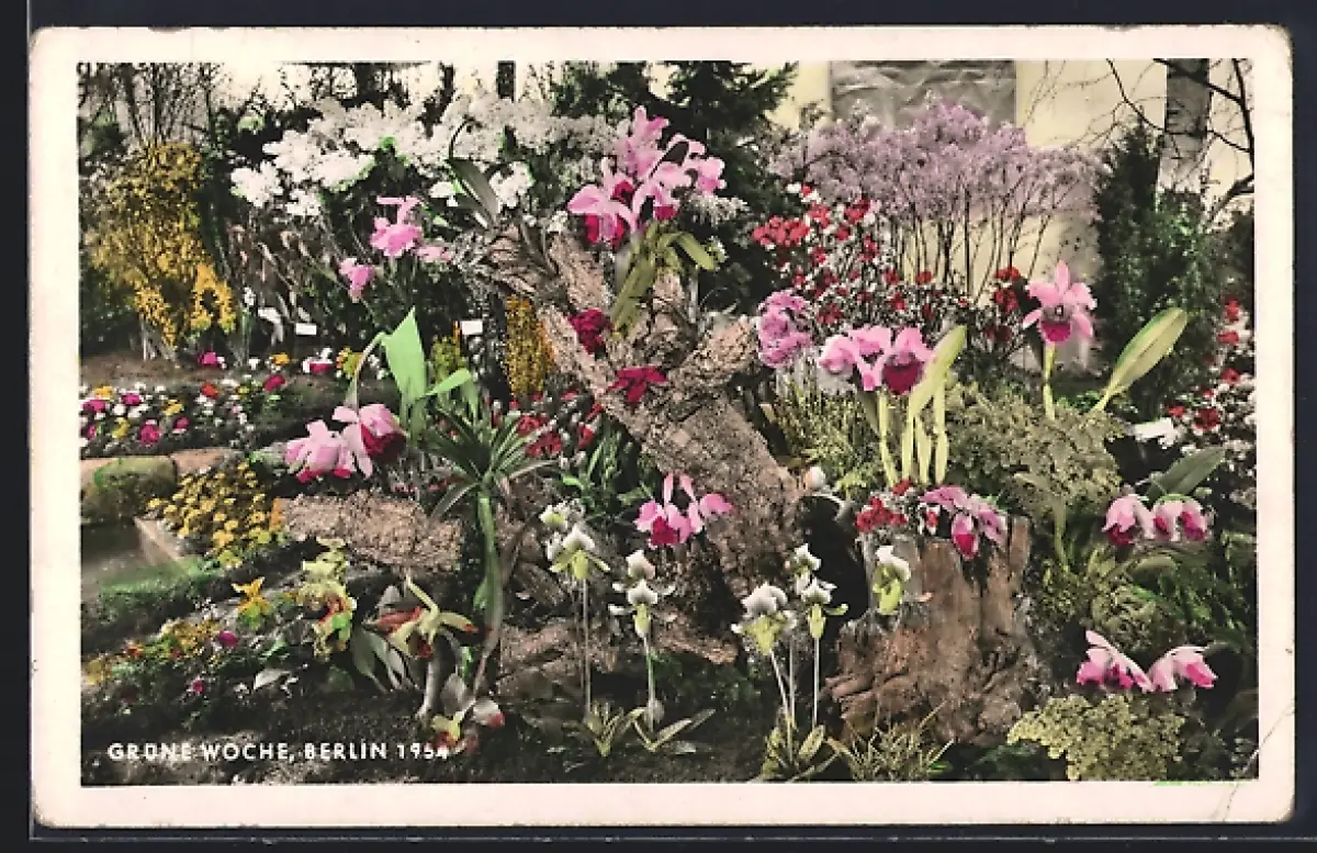 AK Berlin, Grüne Woche 1954, Blumenbeete