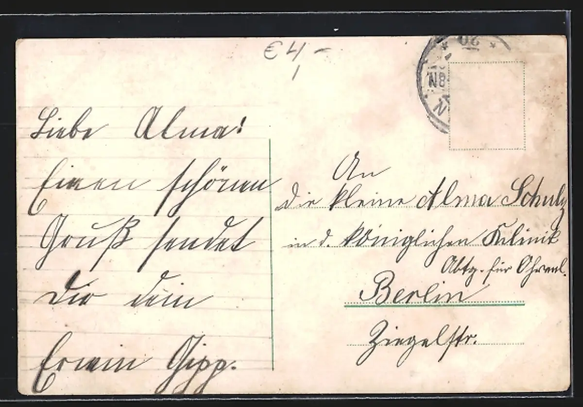 alte Ansichtskarte, gelaufen, Briefmarke entfernt, Stempelspur, guter Zustand