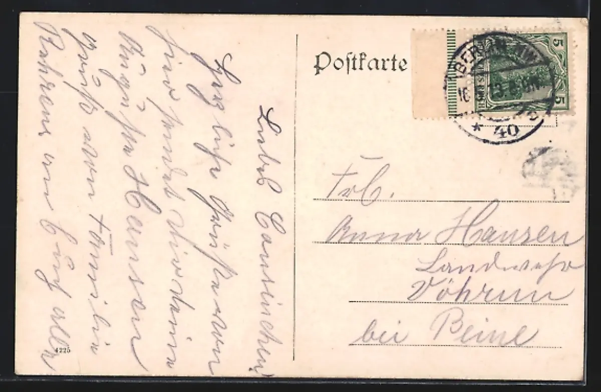 alte Ansichtskarte, gelaufen 1913, Einriss untere Kante, sonst guter Zustand