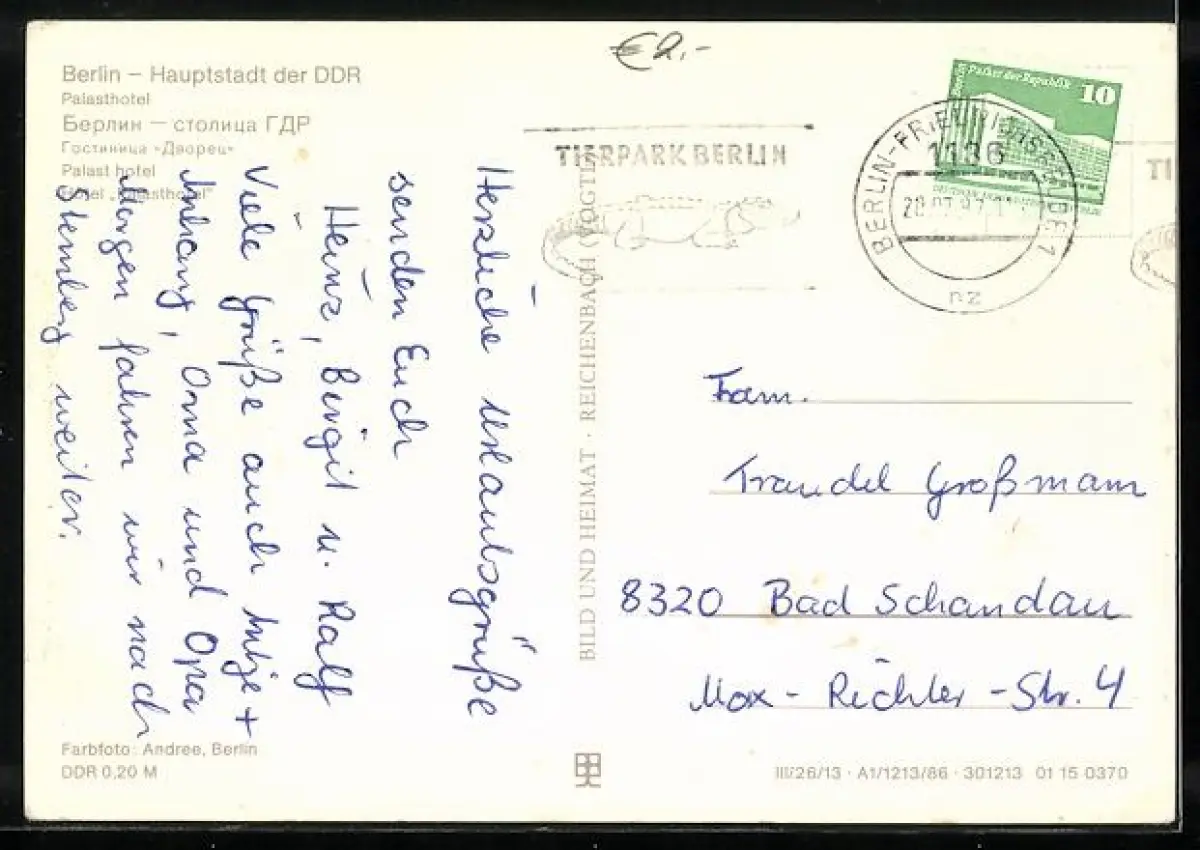 alte Ansichtskarte, gelaufen 1987, guter Zustand