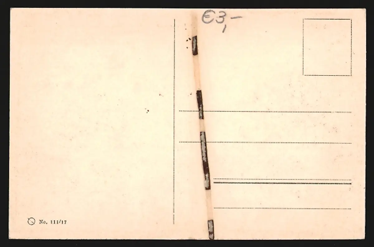 alte Ansichtskarte, ungelaufen, rückseitig Klebe- und Papierreste, guter Zustand