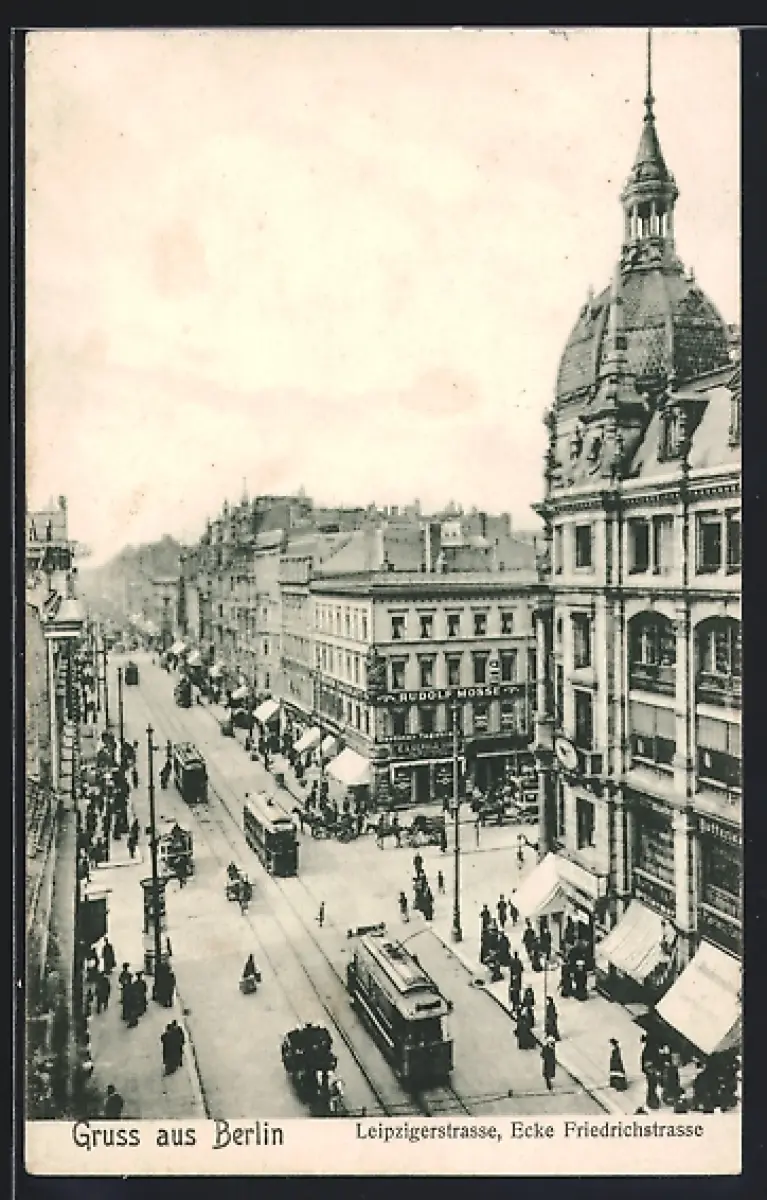 AK Berlin, Partie in der Leipzigerstrasse, Ecke Friedrichstrasse, Strassenbahnen