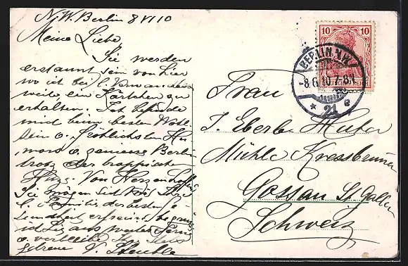 gelaufen 1910, Eckknicke li. unten u. re., minimaler Einriss li. unten, guter Zustand