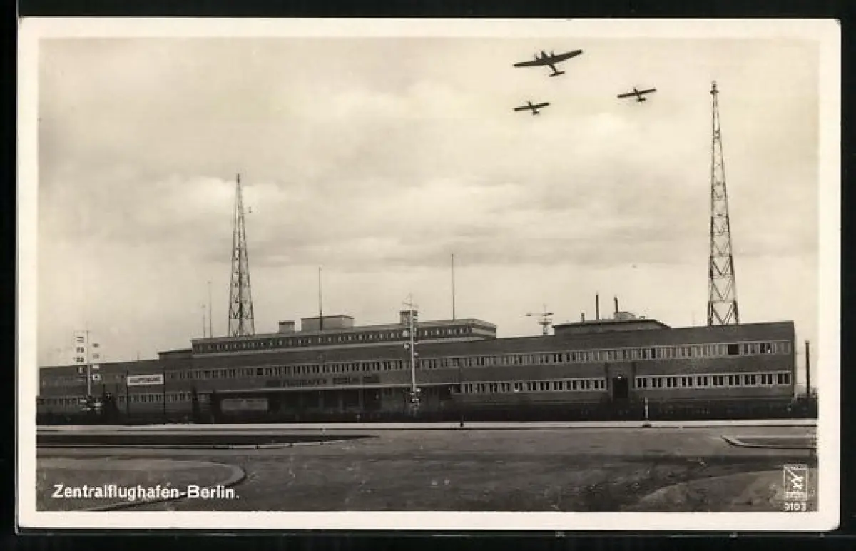 AK Berlin-Tempelhof, Zentral-Flughafen, Flugzeuge