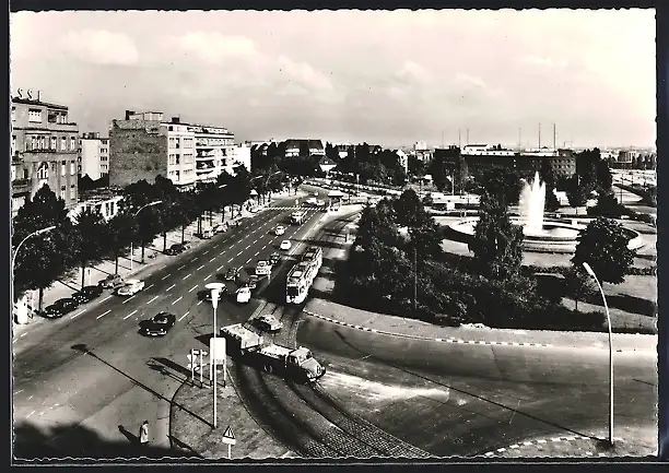 AK Berlin, Theodor-Heuss-Platz mit Strassenbahn und Springbrunnen