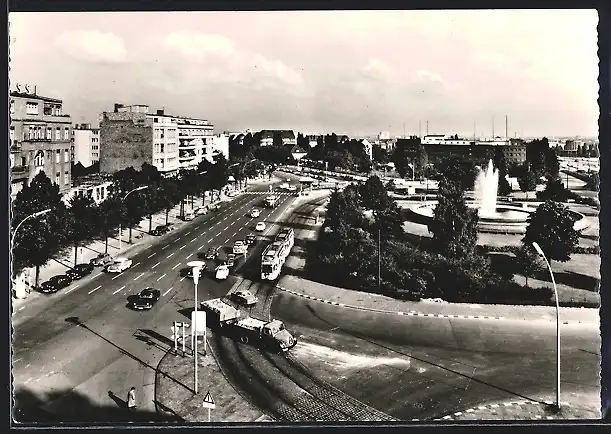 AK Berlin, Theodor-Heuss-Platz mit Strassenbahn und Springbrunnen