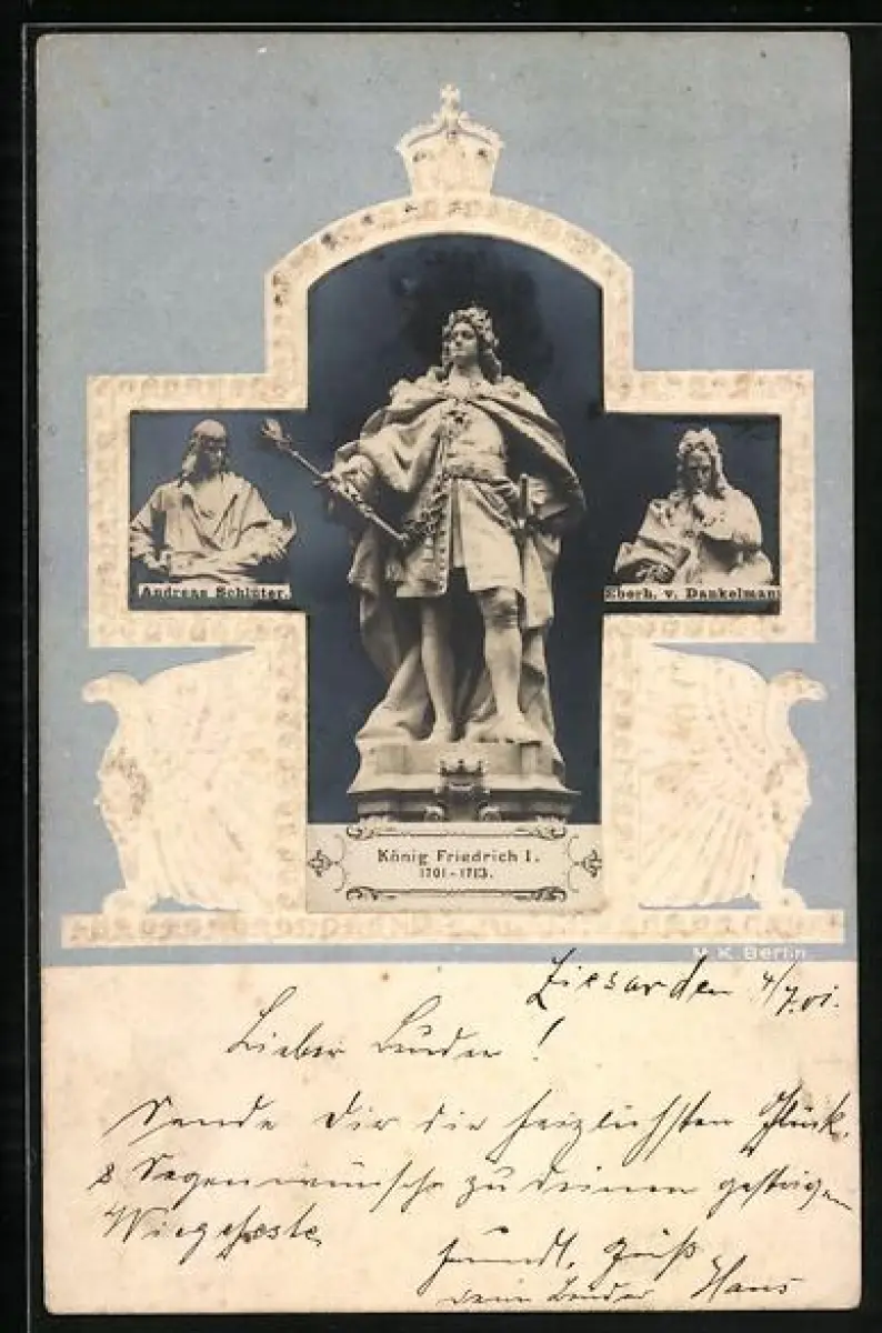 AK Berlin-Tiergarten, Denkmal König Friedrich I, Andreas Schlüter, Eberh. v. Danckelmann