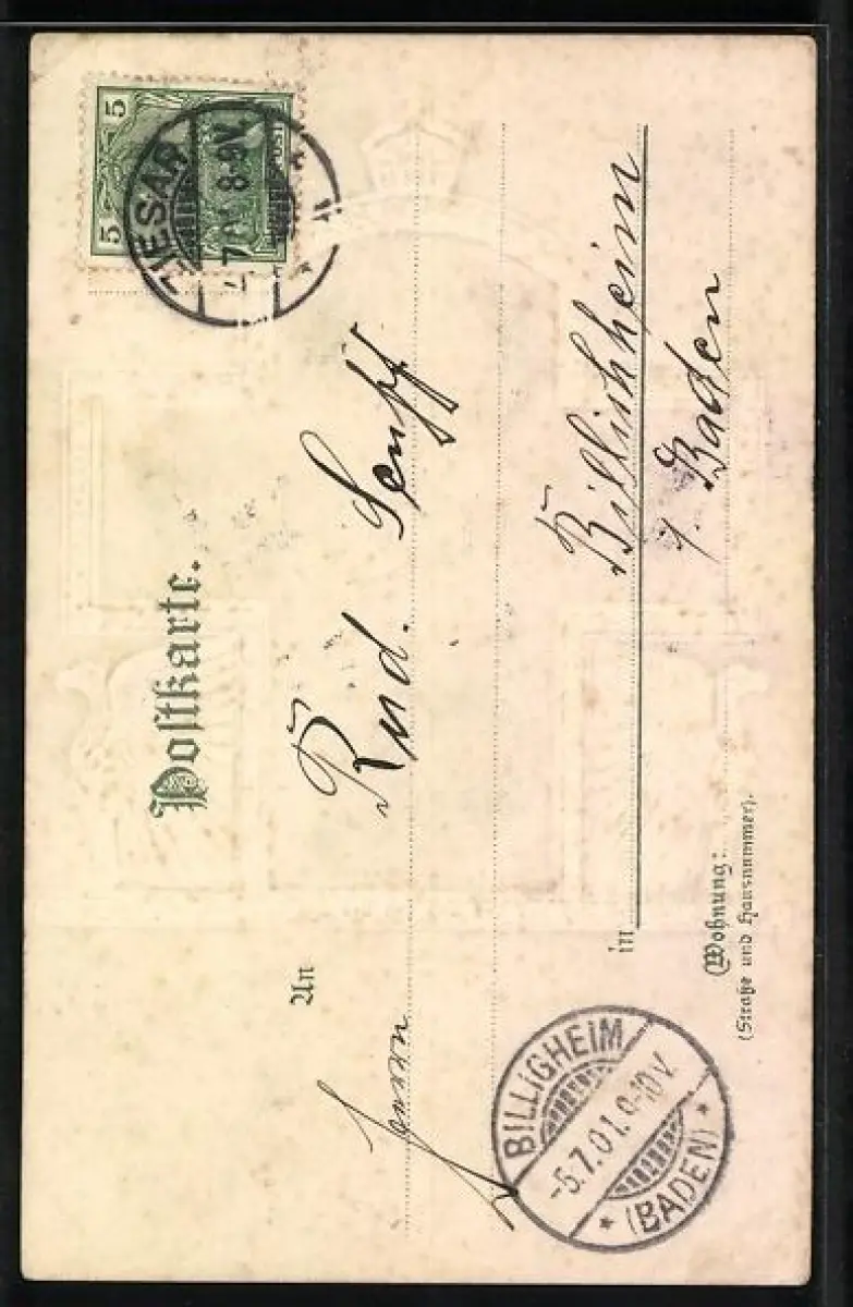 alte Ansichtskarte, gelaufen 1901, Eckknick re. oben, guter Zustand