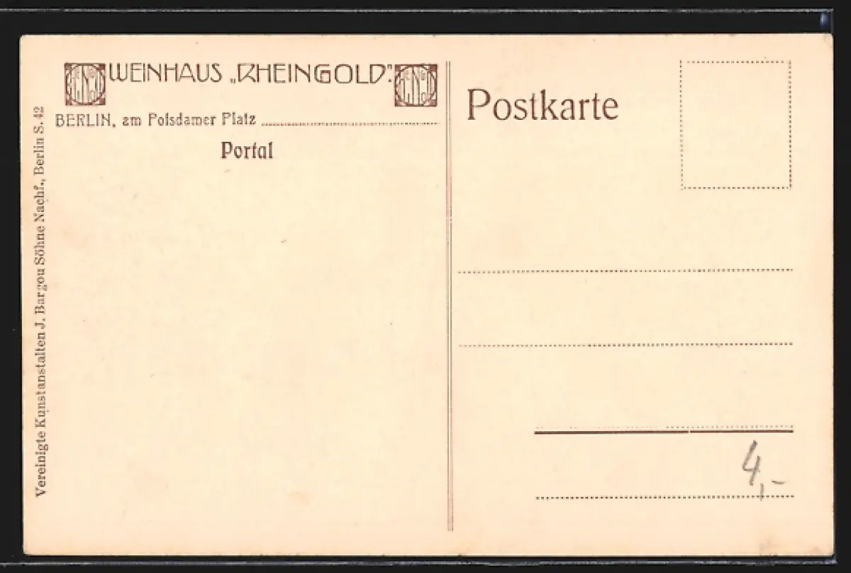 AK Berlin-Tiergarten, Gasthaus Rheingold am Potsdamer Platz