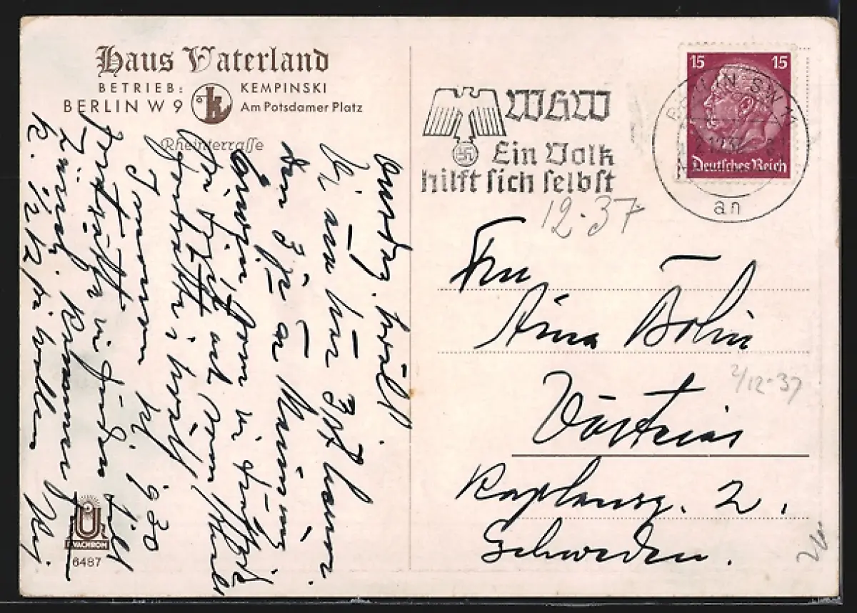alte Ansichtskarte, gelaufen 1937, guter Zustand