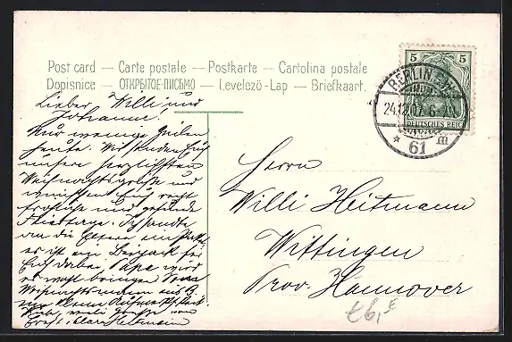 alte Ansichtskarte, gelaufen 1907, guter Zustand