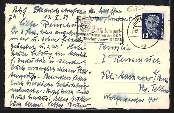 alte Ansichtskarte, gelaufen 1951, Eckknick li. oben, guter Zustand