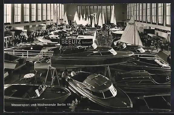 AK Berlin, Wassersport und Wochenende 1960, Boote in der Ausstellungshalle