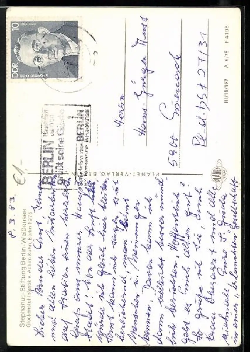 gelaufen 1983, Eckknick li. oben, guter Zustand