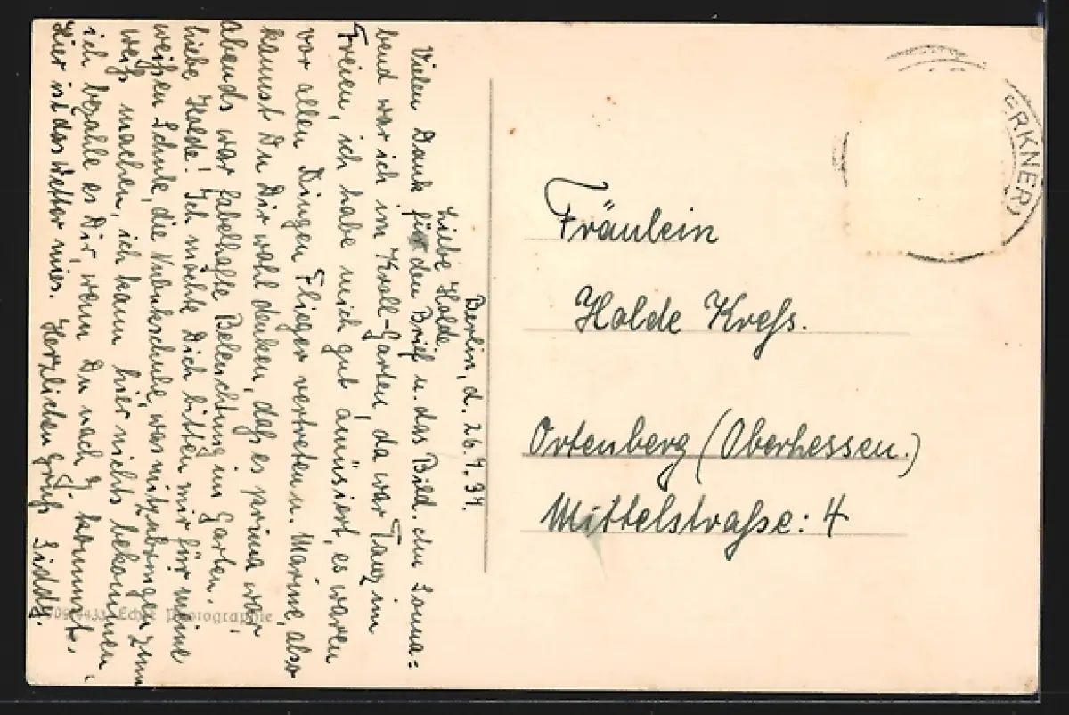 alte Ansichtskarte, gelaufen 1934, Briefmarke entfernt, guter Zustand