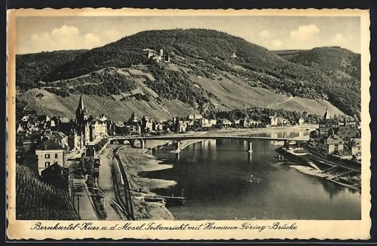 AK Bernkastel-Kues a.d. Mosel, Ortsansicht mit Hermann-Göring-Brücke