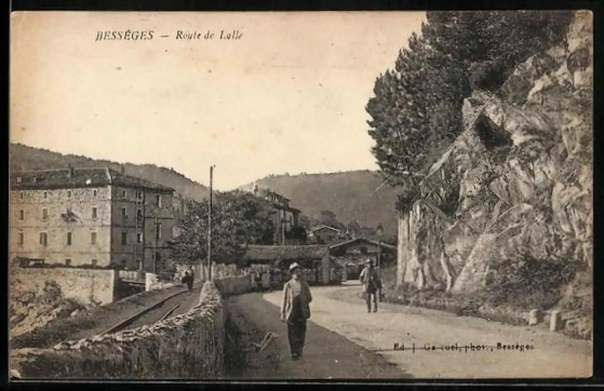 AK Bessèges, Route de Lalle avec vue sur bâtiments et collines