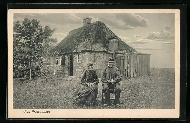 AK Betagtes Paar vor ihrem Friesenhaus sitzend