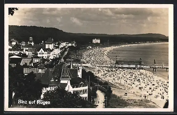 AK Binz auf Rügen, Strandbad aus der Vogelschau