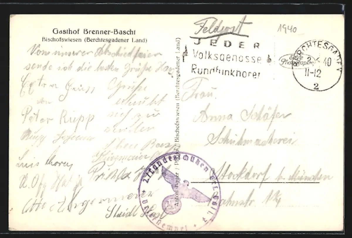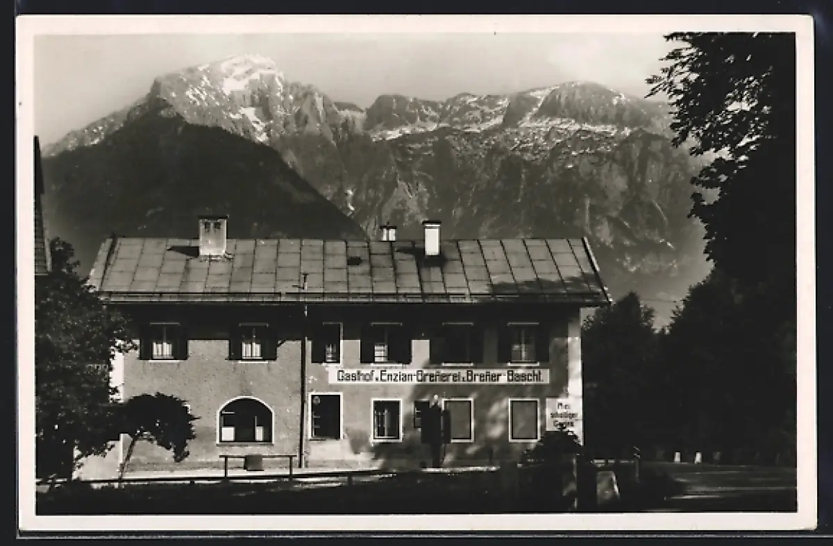 AK Bischofswiesen, Gasthof u. Enzian-Brennerei z. Brenner-Bascht, Aussenansicht
