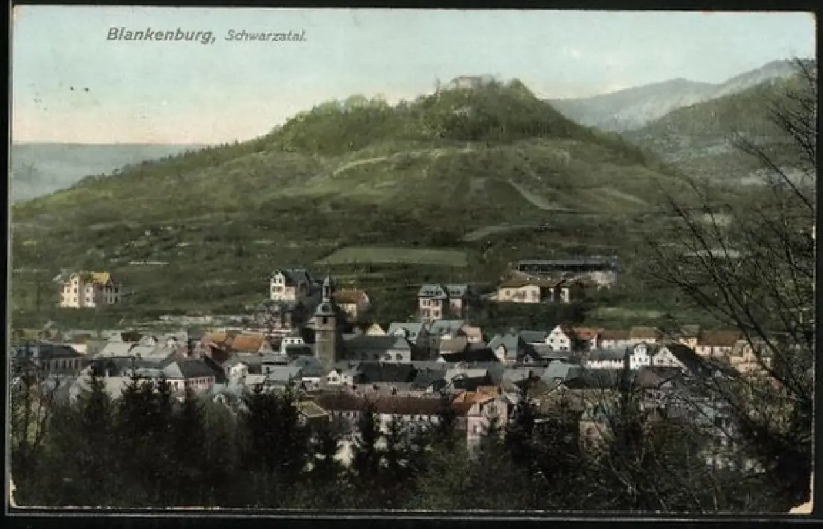AK Blankenburg /Schwarzatal, Ortsansicht mit Kirche und Burgberg