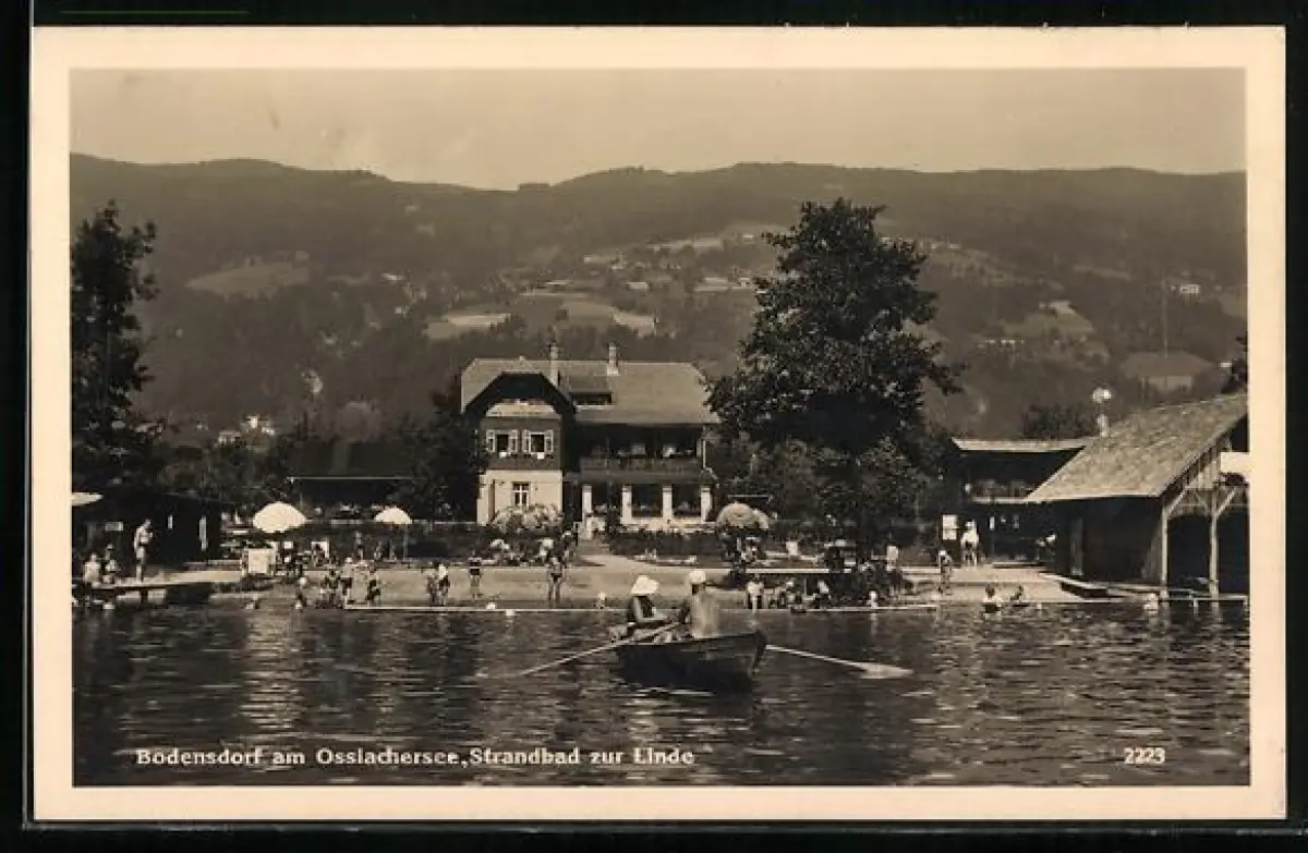 AK Bodensdorf / Ossiacher See, Strandbad zur Linde