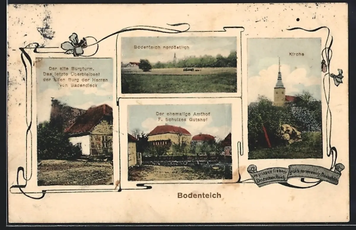 AK Bodenteich, F. Schulzes Gutshof, Kirche, Burgturm