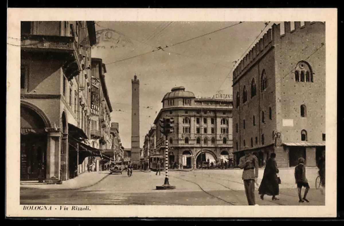AK Bologna, Via Rizzoli, Strassenbahn