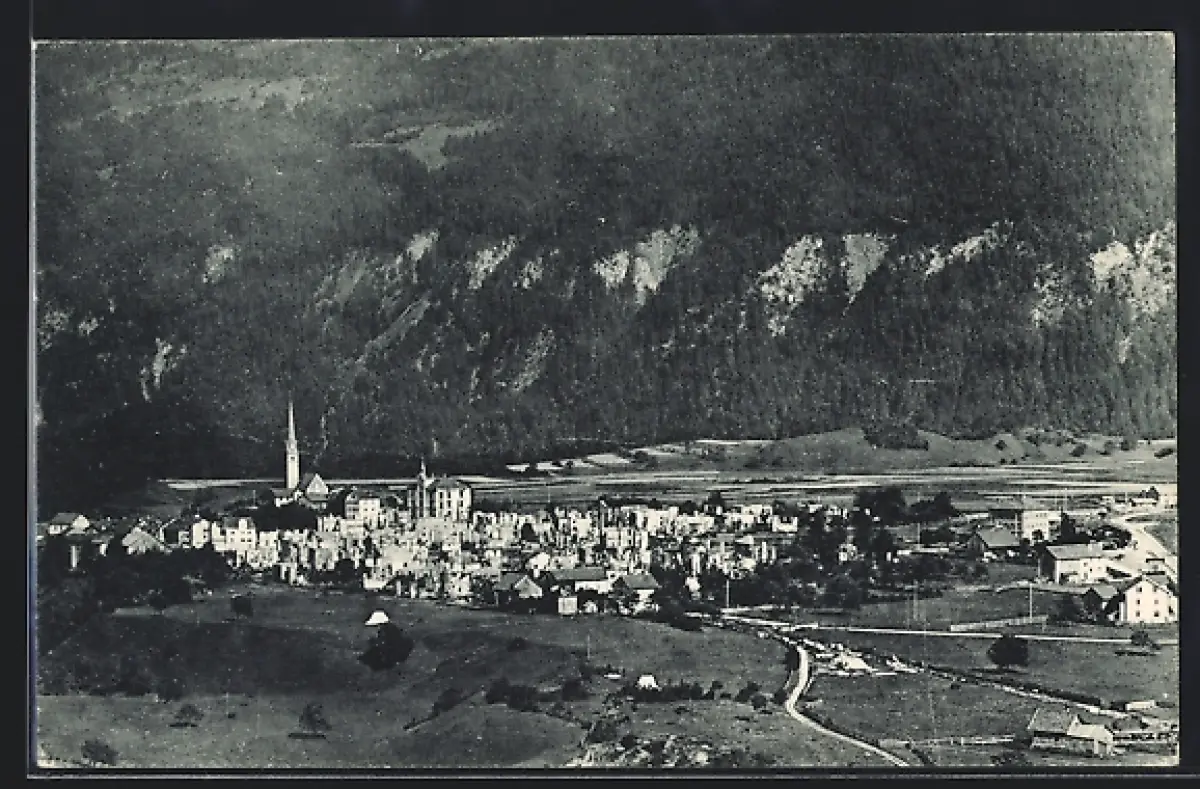 AK Bonaduz, Der Brand vom 1. Juli 1908, Anblick vom Hügel im Westen des Ortes
