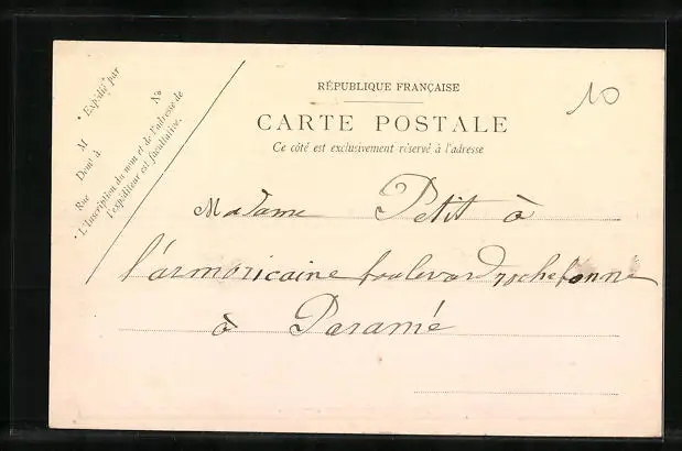 Personenbezogene Daten auf der Rückseite der Karte wurden durch blauen Textmarker unkenntlich gemacht. Die blauen Stellen sind auf die Vorderseite durchgeweicht und wirken sich negativ auf das Postkartenfoto aus