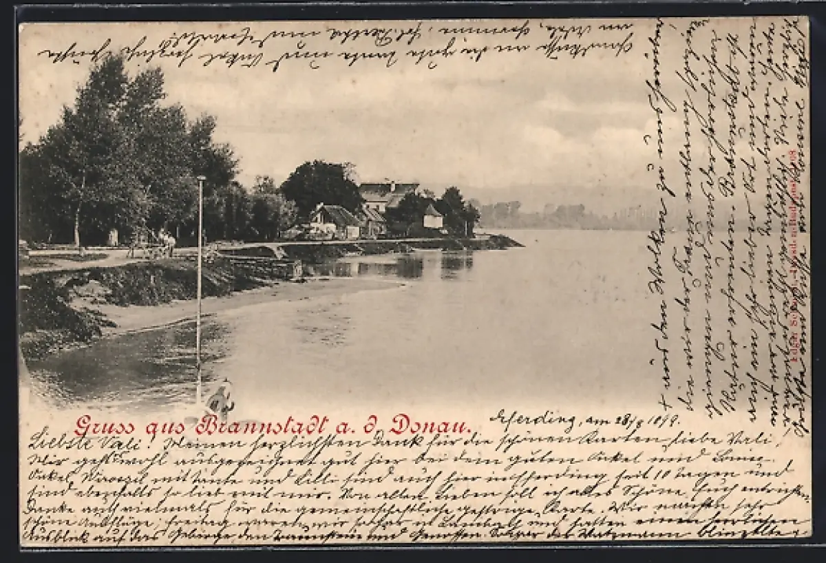 AK Brandstatt a. d. Donau, Uferpartie mit Bäumen