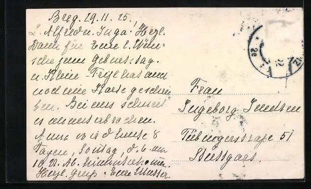 gelaufen 1925, Briefmarke entfernt, rückseitig Oberflächenschaden, Eckknick li. unten, guter Zustand