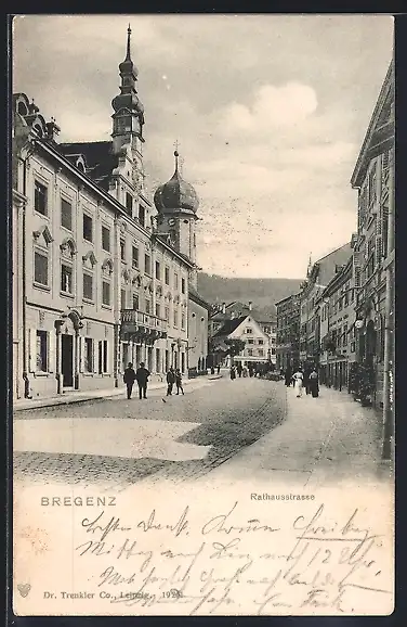 AK Bregenz, Rathausstrasse mit Rathaus und Seekapelle