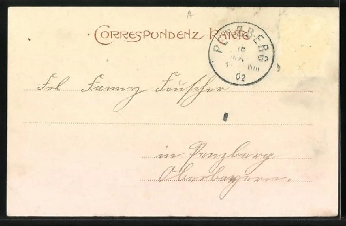alte Ansichtskarte, gelaufen 1902, rückseitig Oberflächenschaden, guter Zustand