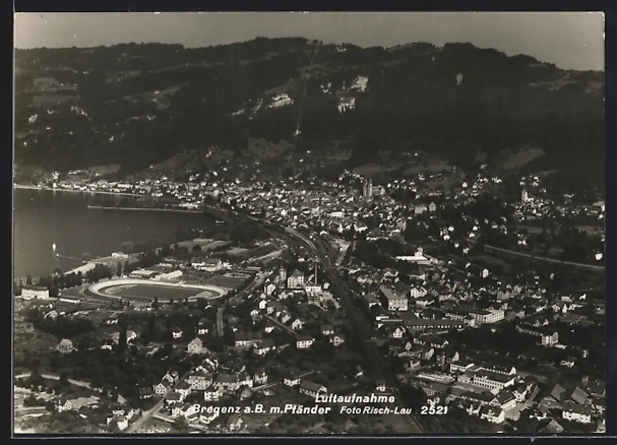 AK Bregenz a. B., Ortsansicht mit Pfänder, Fliegeraufnahme