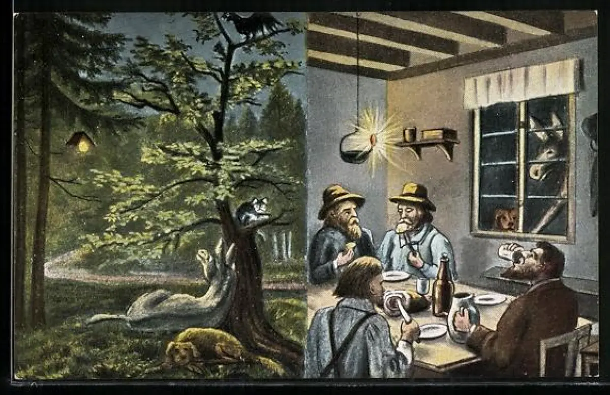 AK Bremen, Die Bremer Stadtmusikanten draussen am Fenster
