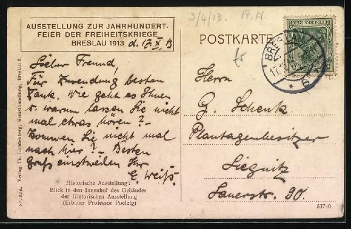 AK Breslau, Ausstellung zur Jahrhundert-Feier der Freiheitskriege 1913, Innenhof