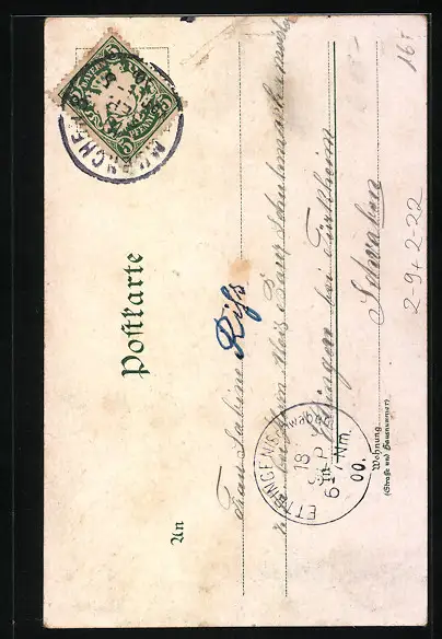 alte Ansichtskarte, gelaufen 1900, guter Zustand