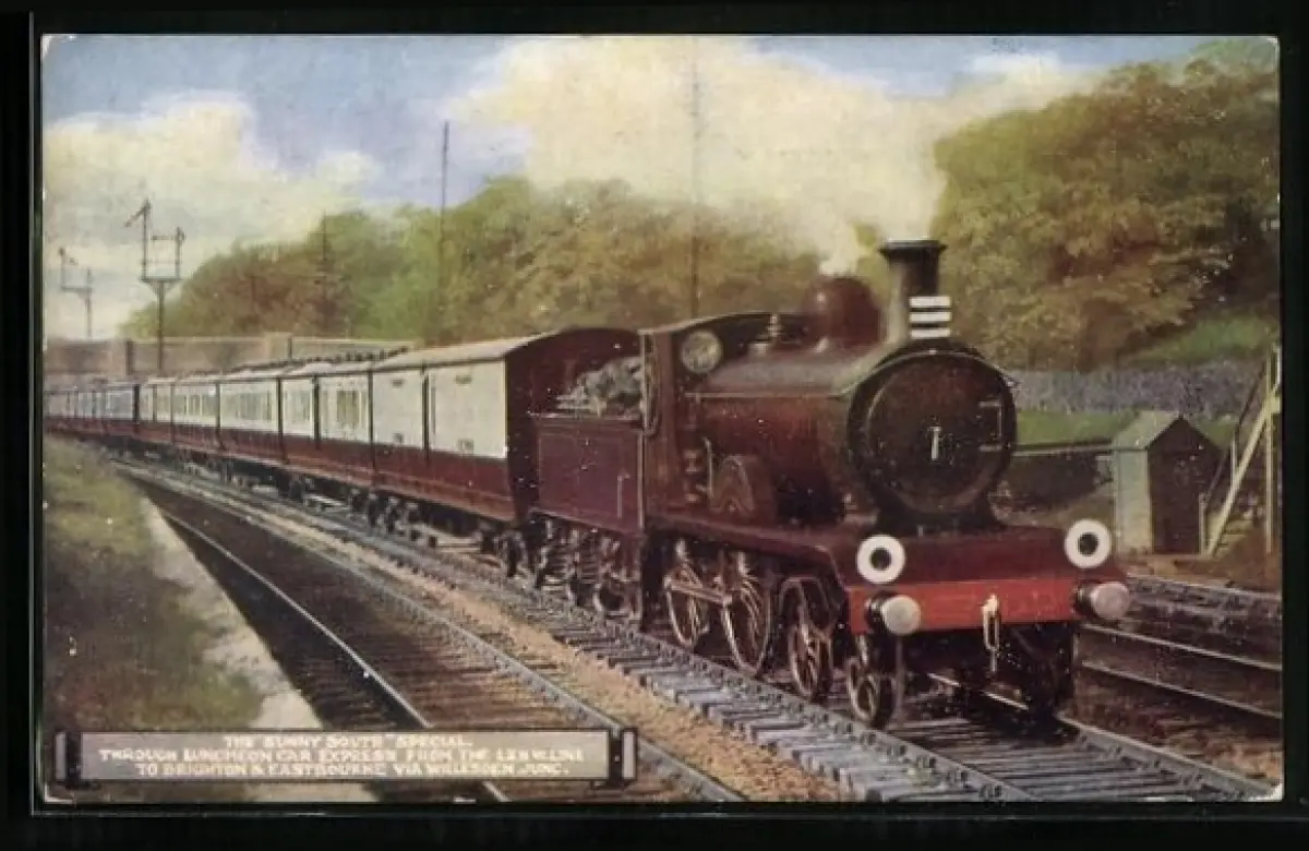 AK Brighton, Lokomotive Sunny South der L. & N. W. Line, englische Eisenbahn