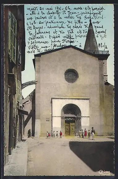 AK Brignoles, Église Paroissiale avec enfants jouant devant l`entrée